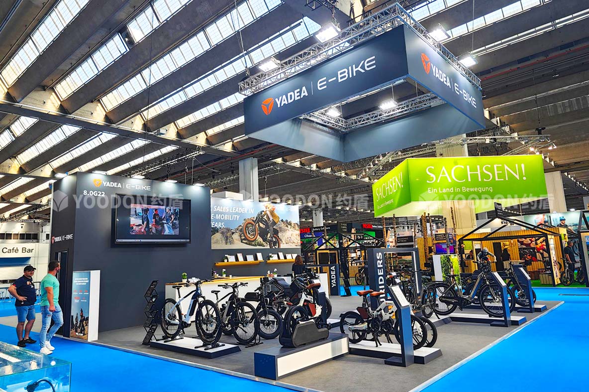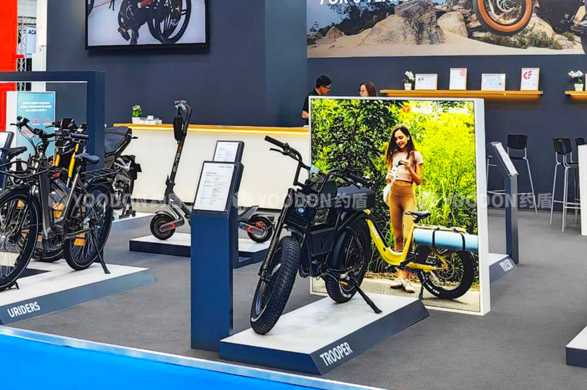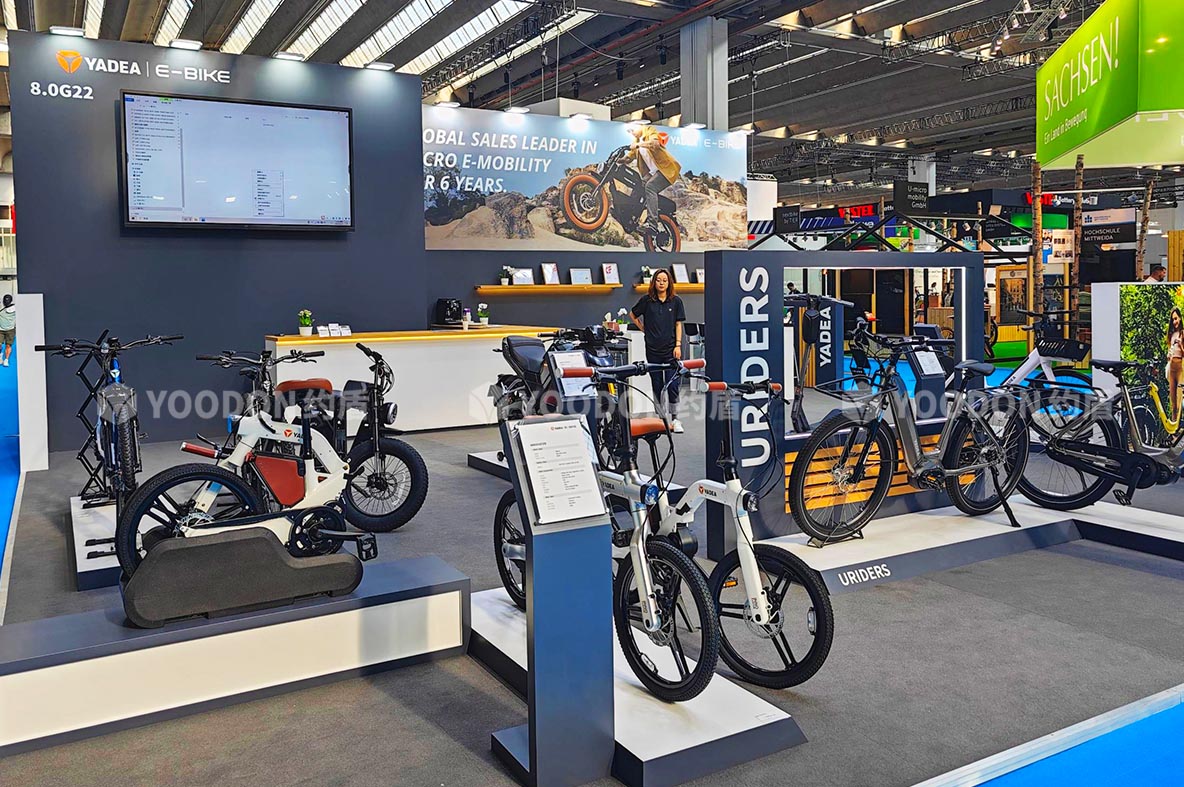 2023歐洲自行車展覽會(EUROBIKE)于2023年6月21日至6月25日在德國法蘭克福會展中心舉辦,促進了自行車運動在全球的發展。約盾展覽德國展臺搭建方案根據客戶需求,以生活時尚簡約設計方向,打造出雅迪國際范品牌形象!